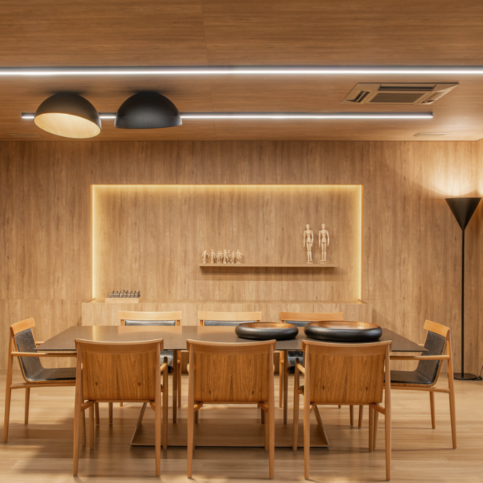 Além de oferecer soluções de iluminação residencial, também somos especializados em iluminação corporativa e industrial. Nossa equipe seleciona cuidadosamente as luminárias mais adequadas, alinhadas às especificações técnicas necessárias para cada projeto empresarial