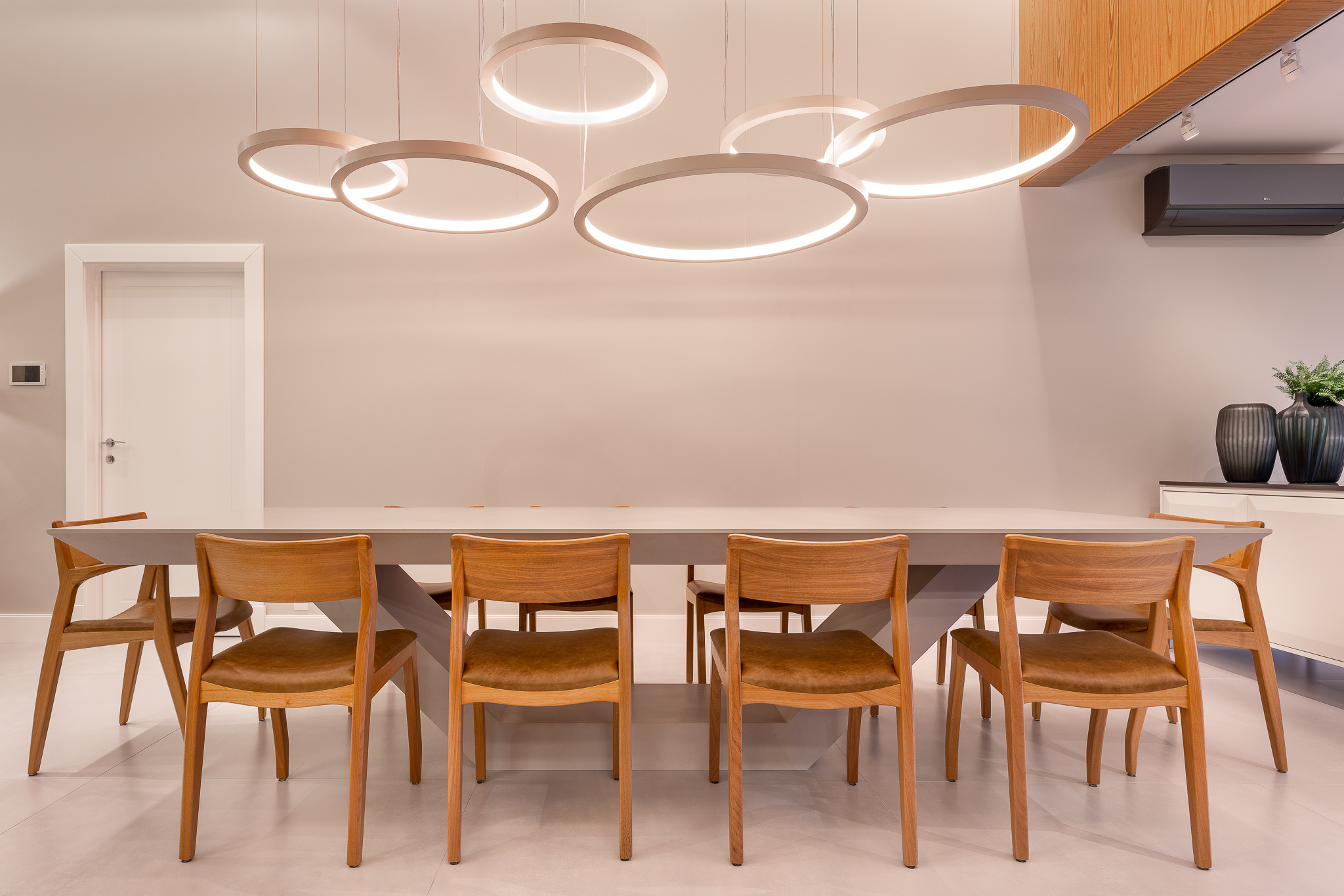 Além de oferecer soluções de iluminação residencial, também somos especializados em iluminação corporativa e industrial. Nossa equipe seleciona cuidadosamente as luminárias mais adequadas, alinhadas às especificações técnicas necessárias para cada projeto empresarial