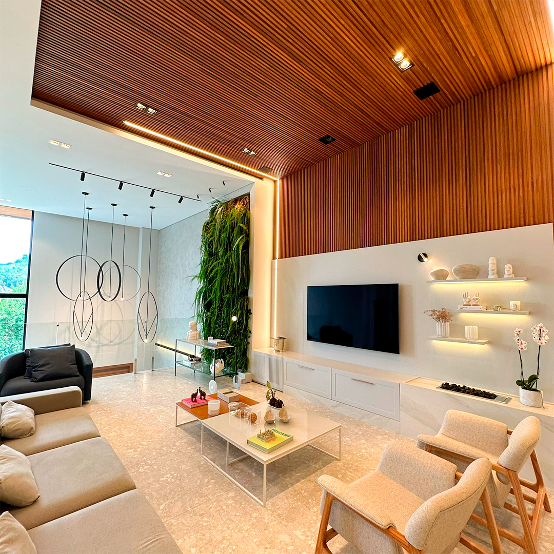 Apresentamos uma extensa variedade de produtos, abrangendo desde iluminação técnica e decorativa até persianas, cortinas, tapetes e uma seleção exclusiva de papéis de parede.